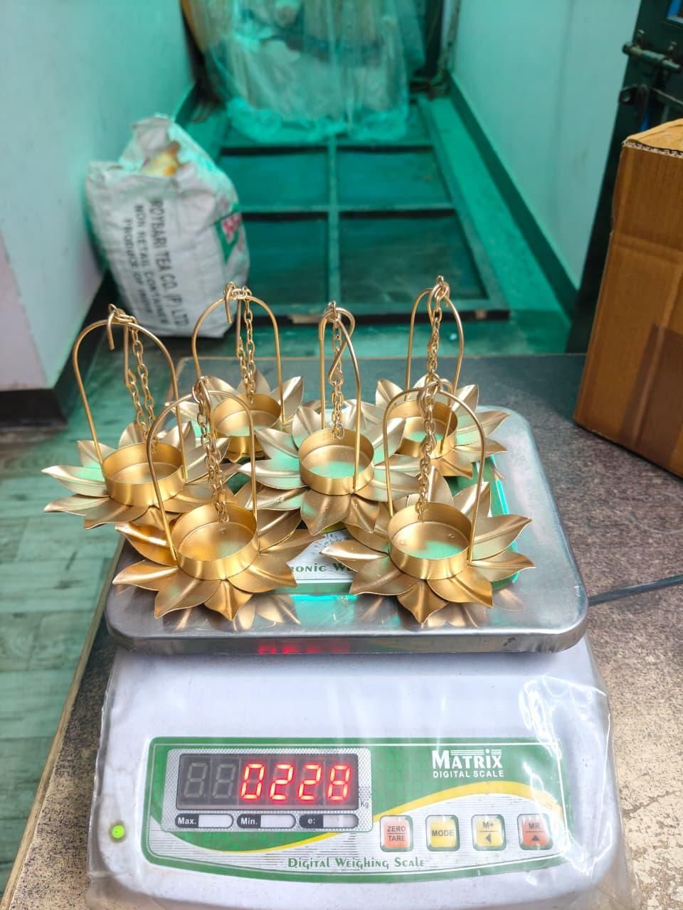 Product Name: Hanging Baby Lotus 6 pcs SetPackage Contains: It has 6 pcs Set of Hanging Baby LotusMaterial : MetalProduct Dimension (LXBXH): 10L x 10W x 25HCombo Pack: Pack of 6Weight: 228 gmsAdditional Information: Beautiful lotus-shaped tealight holders with a luxurious gold finish and, perfect for creating an enchanting ambiance.Includes three matching tealight holders that can be used together or separately for flexible decorating options.